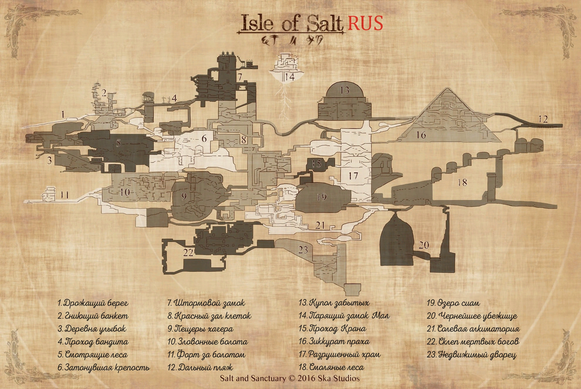 Salt And Sanctuary Map. Let's try again! Ultimate Salt and Sanctuary Map by magicofgames on DeviantArt This includes an overall basic map listing the locations gives a general view of the island's interconnectivity provided by the developer, as well as full-detailed maps provided by MagicOfGames and SubmergedLemon, who created the complete screenshot map and the individual NPC/Treasure maps respectively. Uncomment Save and Add new marker buttons and set markers draggable to true in index.html